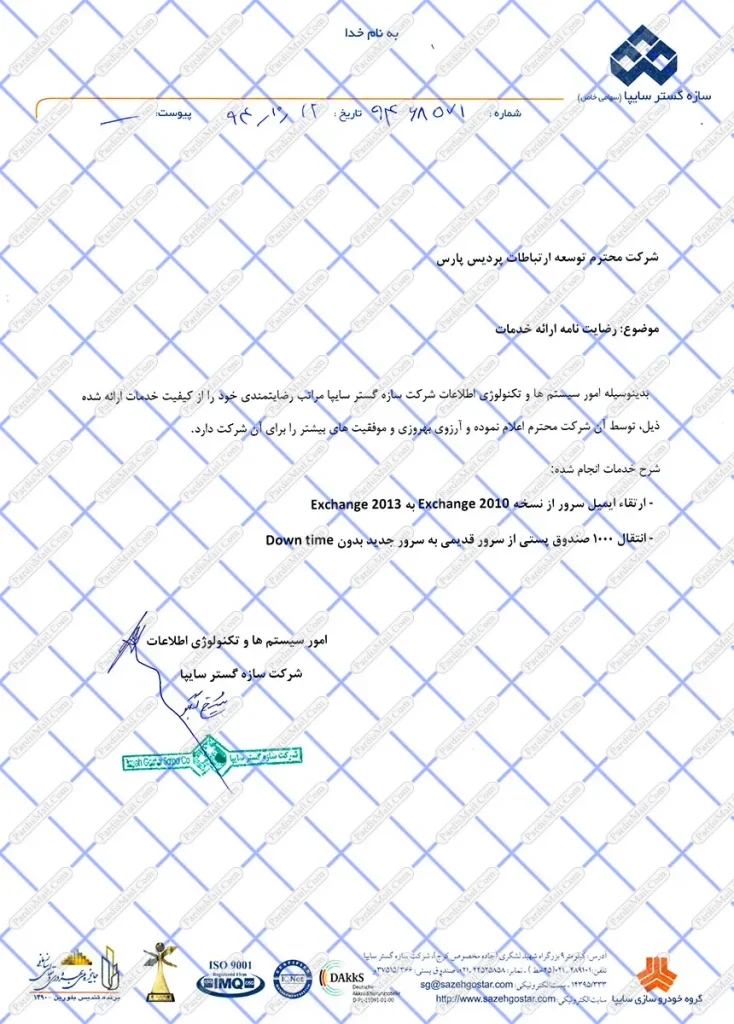 از اینکه بتوانیم رضایت مشتریان را جلب نماییم احساس خوبی خواهیم داشت و طبیعی است که نارضایتی مشتریان به ما نیز منتقل خواهد شد. در ذیل برخی از تقدیرنامههای دریافتی پردیس میل را مشاهده میکنید.